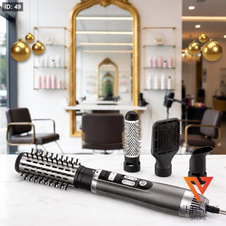 الجهاز يأتي بـ 4 رؤوس قابلة للتبديل: فرشاة دائرية لتجعيد الشعر، فرشاة تنعيم، رأس لتكثيف الهواء (تركيز الهواء للتجفيف)، ورأس لف الشعر، مما يجعله مثالي للتجفيف، التمليس، التمويج، والتصفيف في جهاز واحد.
