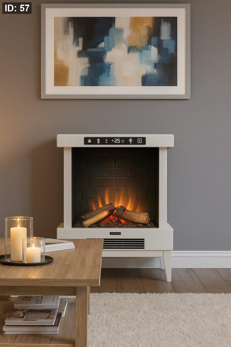 •تصميم فاخر على شكل مدفأة حطب مع لهب واقعي يعطي جو دافئ ومريح.